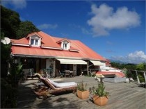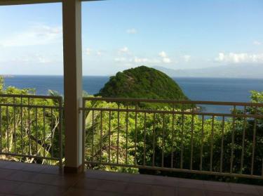 de la maison, et offrant la plus belle vue des Saintes : le pain de sucre, l'ilet Cabrit et la Soufrière en fond de toile.